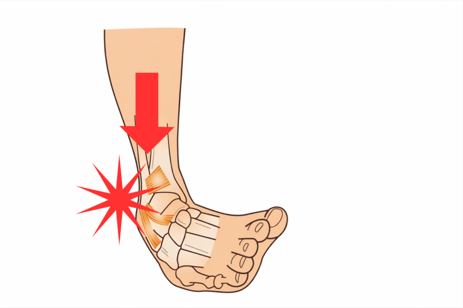 もっとも多い受傷の形は、足首が下を向いた状態で内側にひねられる動きです。