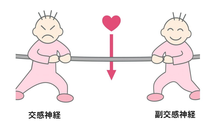 この関係は、一本の綱を交感神経と副交感神経が引き合っている状態にたとえることができます。