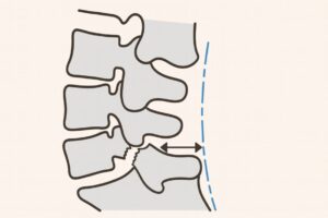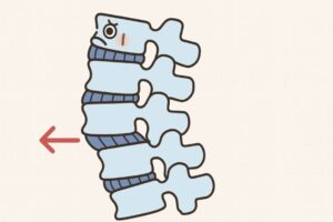 変性すべり症 は、加齢によって背骨を支える椎間板や関節がすり減ったり弱くなったりし、骨が前後や横にずれやすくなるタイプです。変化が強くなると、前だけでなく横にずれるケースもあります。