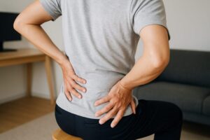腰椎すべり症では、立位や歩行など「腰を反る姿勢」で負担が増え、前かがみの姿勢で神経の圧迫が軽減される傾向があります。また、お尻〜脚にかけてのしびれや痛みは、腰の関節や神経の圧迫が原因で起こることが多く、長時間同じ姿勢が続くと悪化しやすいのが特徴です。