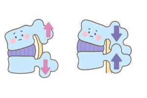 体幹の動作を繰り返すことで靭帯は少しずつ肥厚し、関節の摩耗やゆるみも進み、やがて神経の通り道へ張り出してしまいます。