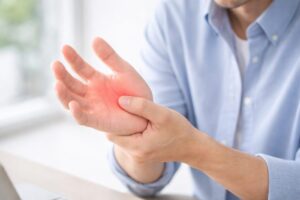 最初は「なんとなく腕がだるい」「しびれやすい気がする」といった軽い違和感から始まり、長時間の作業や腕を上げる動作で悪化することがあります。